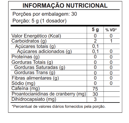 1 AUXÍLIO METABÓLICO Estimula o metabolismo e favorece a queima calórica. INGREDIENTES Cafeína anidra, taurina, extratos naturais e aroma de melancia.