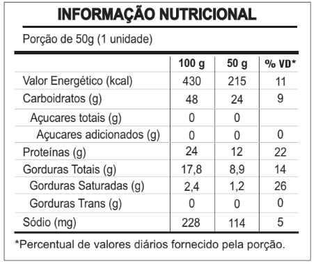 INGREDIENTES Grits de milho, proteína concentrada do soro do leite, óleo de soja, sal, aroma idêntico ao natural (variando conforme o sabor), amido. INFORMAÇÃO NUTRICIONAL Porção de 50 g (1 unidade).